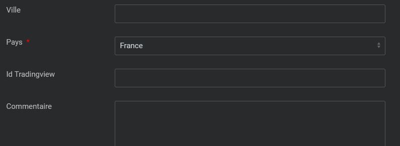Si vous avez un compte Tradingview, vous pourrez préciser votre "username" dans le champ Id Tradingview.